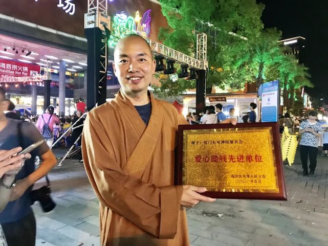 石室禪院慈善會(huì)作為愛心助殘單位出席了本次活動(dòng),石室禪院慈善會(huì)副會(huì)長凈理法師代表會(huì)長忠明法師上臺(tái)接受了“愛心助殘先進(jìn)單位”牌匾。